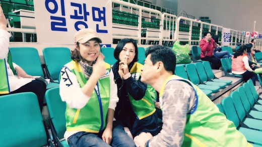 점심때 도시락도 나눠드리고 커피도 드리고 초청가수가 나올때 공연을 함께 즐기고자 앞에서 함께 호흡하는 효실 부단장님과 추첨때 그들을 대신해 선물을 들고 뛰어다니시는 단장님 그외 어동 가족들...